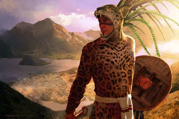 Die Jaguarkrieger trugen die von diesem Tier dargestellte Kleidung, weil sie glaubten, dass sie auf diese Weise die gleiche Stärke im Kampf erlangen und sich wie er verhalten könnten.