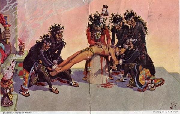 Die Menschenopfer der Azteken hatten einen religiösen Kontext . Es war eine Möglichkeit, ihre Götter zu besänftigen und sie glücklich zu machen.