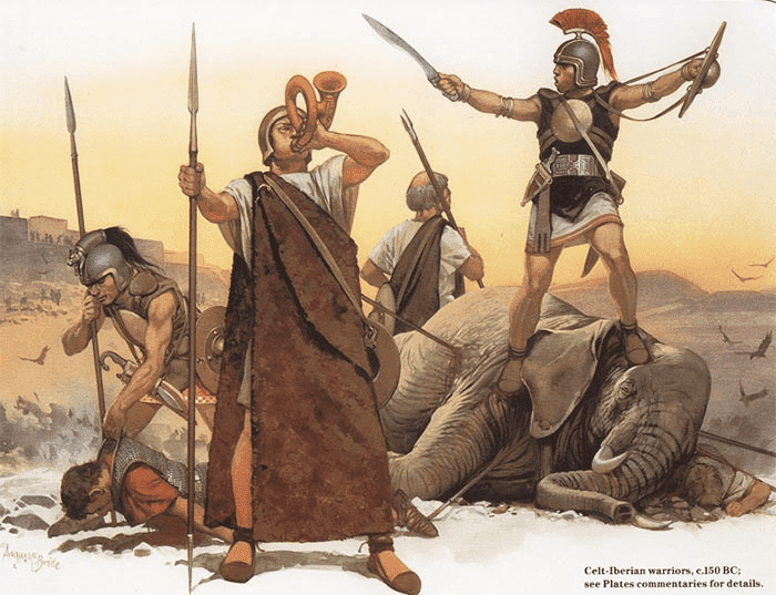 Später, um die Versorgung Hannibals aus Hispanien abzuschneiden, drangen die Römer nach dem Ebro in das Plateau ein, und sieben Jahre später hatte die römische Armee bereits keltiberische Hilfskräfte unter ihren Truppen.