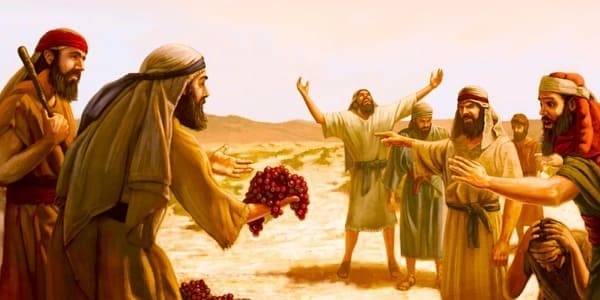 Zehn dieser Entdecker kehren zurück, aber nur zwei von ihnen, Josua und Kaleb, behaupten, dass Gott den Hebräern helfen wird, in Kanaan zu bleiben , während der Rest von Riesen spricht, die sie töten könnten.